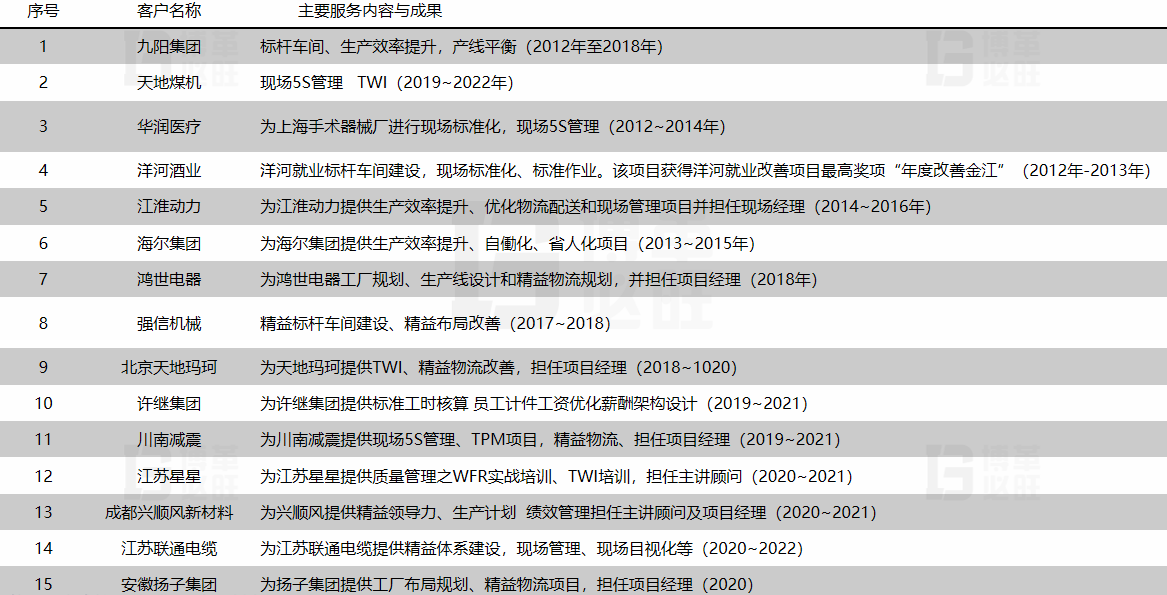實戰經驗:結合豐田(TPS)、丹納赫(DPS)、美的(MBS)等企業精益系統建設經驗,為企業量身訂制精益管理管理系統,從制造性企業管理的基礎,現場/效率/質量/設備管理/班組等維度系統提升企業管理水平,同時培養精益管理人才;為企業成功輔導的現場管理、效率管理、流程管理、工廠物流配送項目、工廠生產規劃等超過1000個,使全價值鏈總成本降低30%、制造周期縮短50%、生產效率提升35%、庫存降低35%、準時交付率提升50%,帶來的直接財務收益數千萬元。